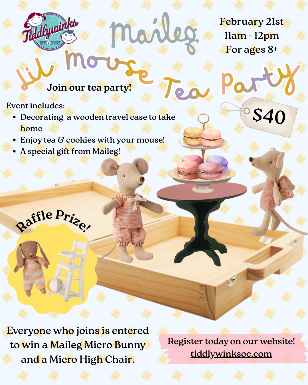 It is important to have a place to rest after a dance lesson. This little sister mouse comes in a beautiful box that she can use as a day bed. Fabric may vary.