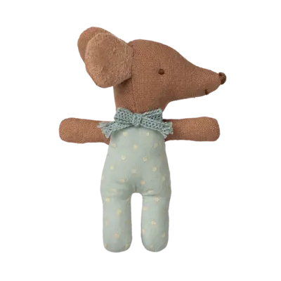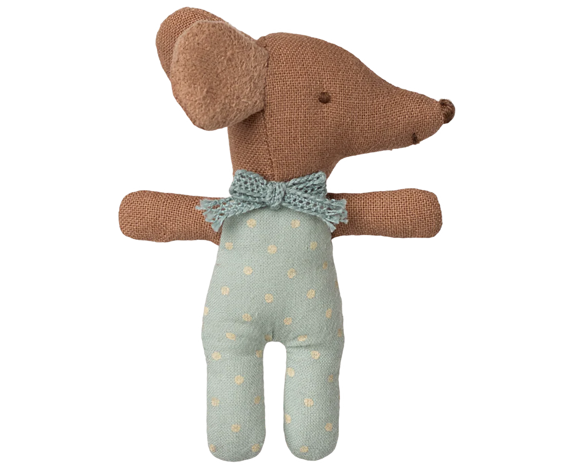 Box is made of cardboard, bedding is cotton, and polyester filling for the mouse.
