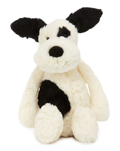 Silky-soft and lovingly loyal, Bashful Black & Cream Puppy wants to play all day! His smudgy black patch and sooty tail make him even more adorable!