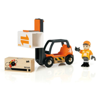 Goods and cargo are coming and going with trains and trucks from all directions. Use this detailed toy fork lift to help the worker. Lift the loads up, down, off and on trains and trucks with the help of the lever. The poseable figure fits perfectly inside the driver´s seat.