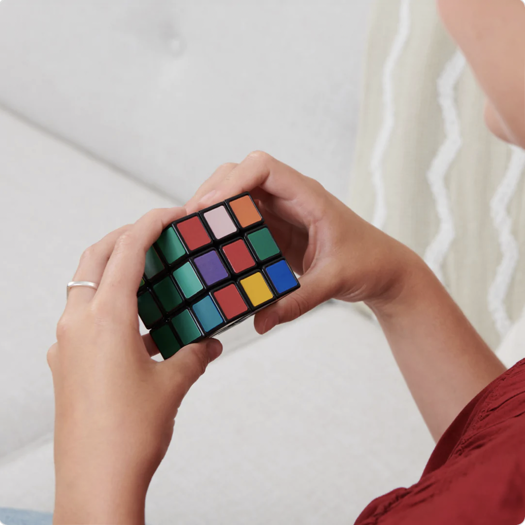Just when it looks like the Rubik's Impossible is solved, look again! The iridescent tiles change color when viewed from different angles, making this portable puzzle more challenging than any game you have done.,TURN, TWIST, & REPEAT: The Rubik's Impossible is a 3x3 Rubik's puzzle cube with a very high challenge level.