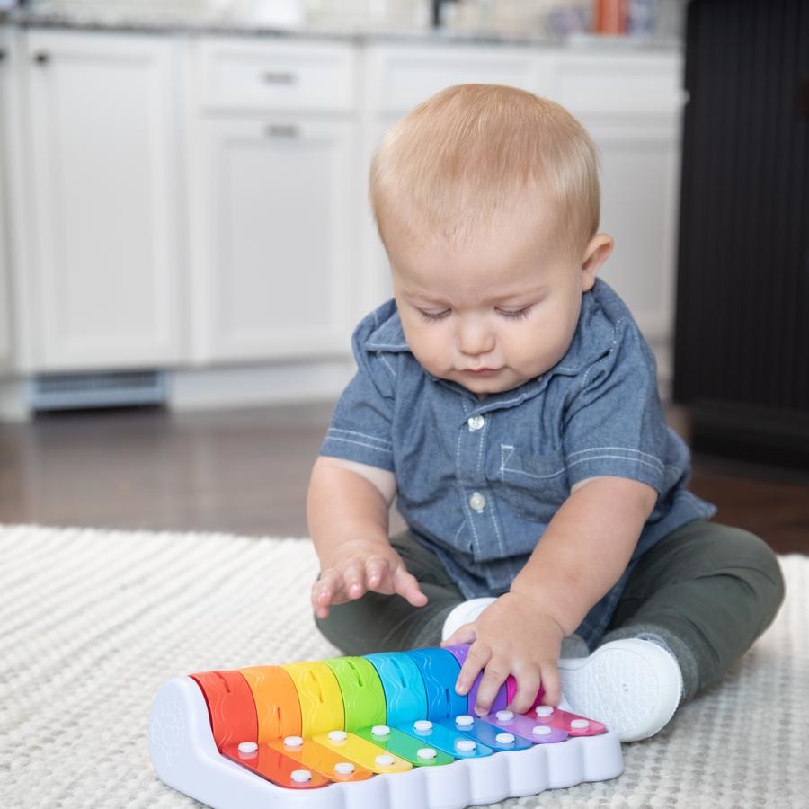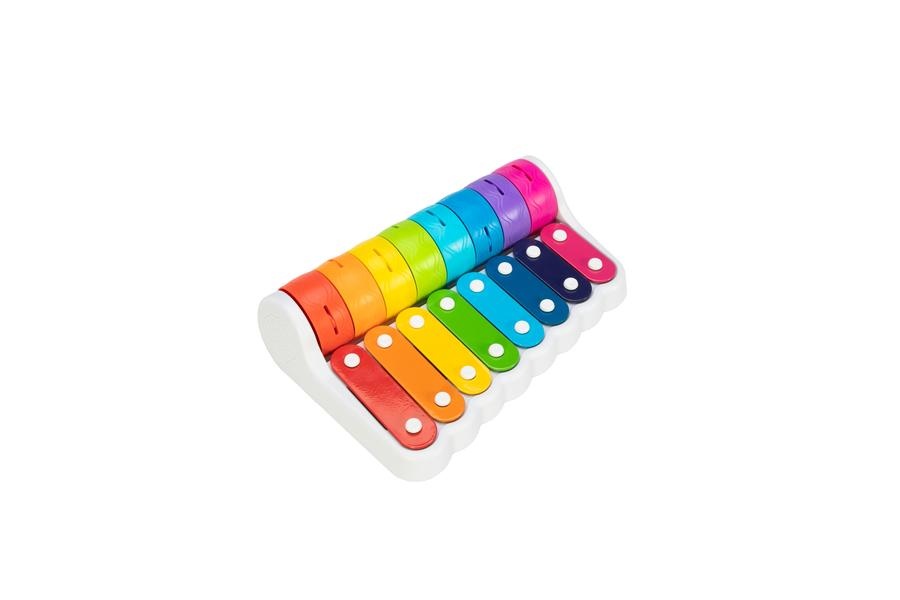 The included mallet lets little ones bang out tunes both wild and wonderful. Meanwhile, flip to the other side and spin the wheels. Each note rings beautifully! Or - Here's an idea the parents will LOVE - pick up the keyboard side and roll all the wheels at once. It's a delightful clatter no kid can resist! Early musical learning becomes a wild adventure with the Rock 'N Roller Piano.