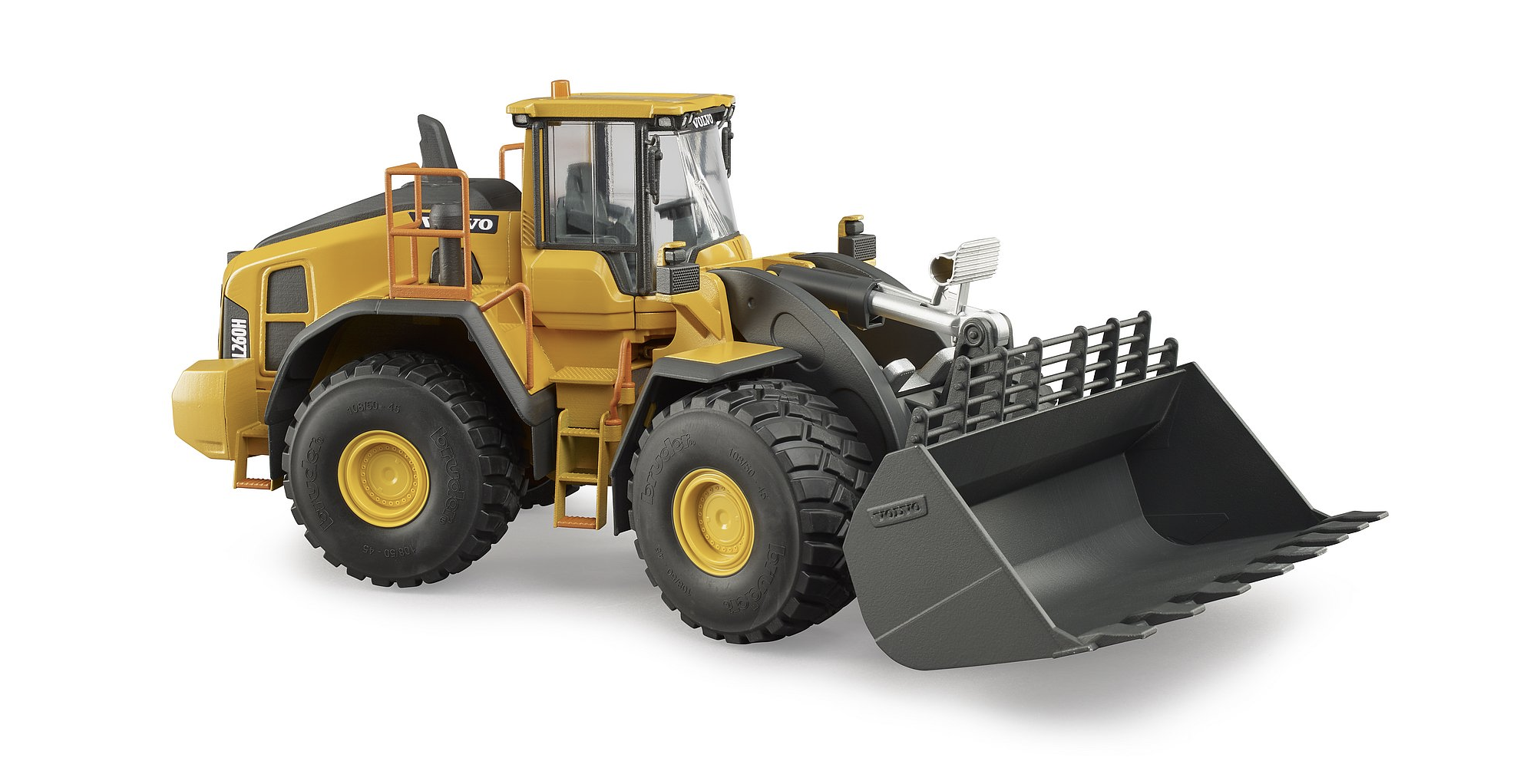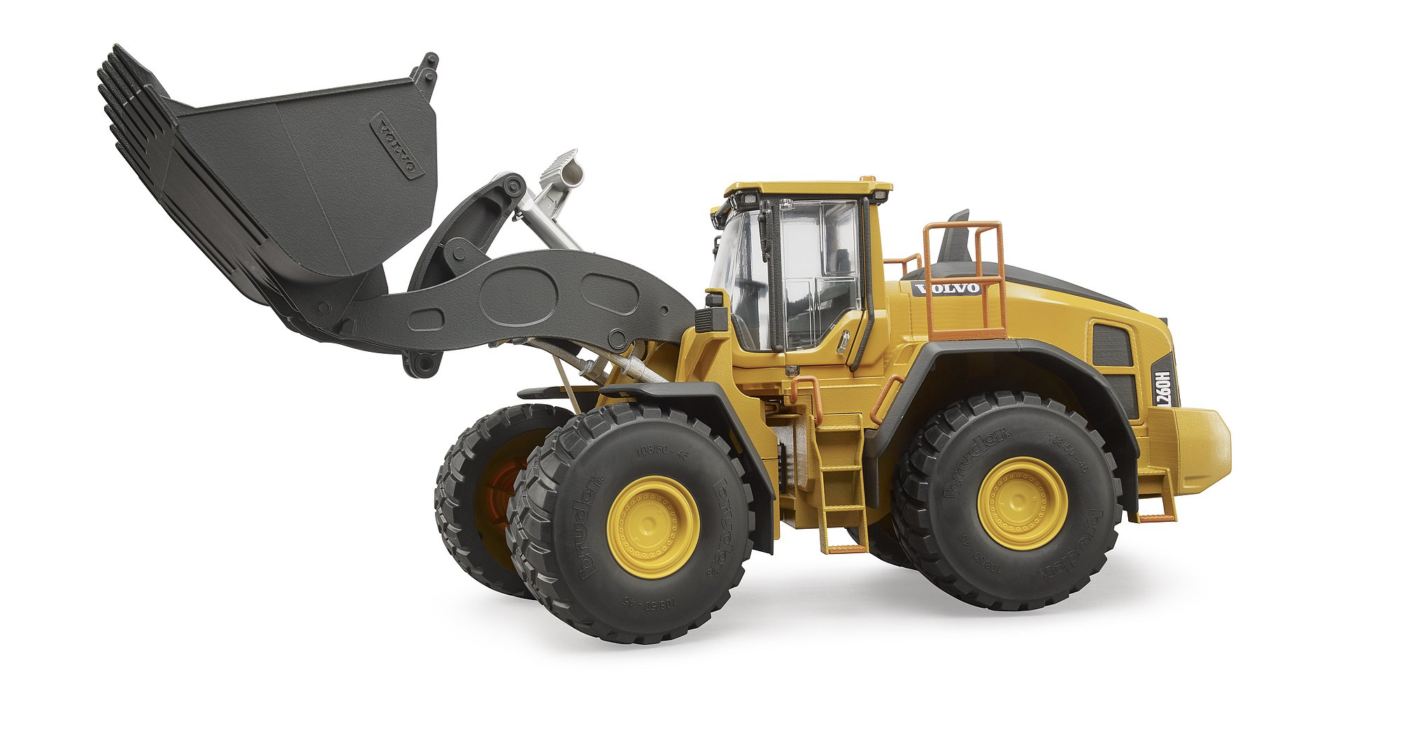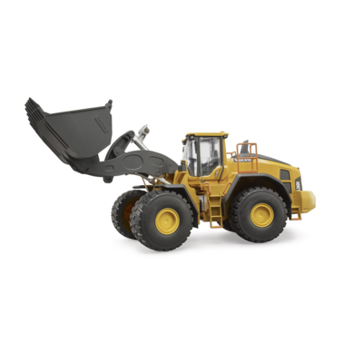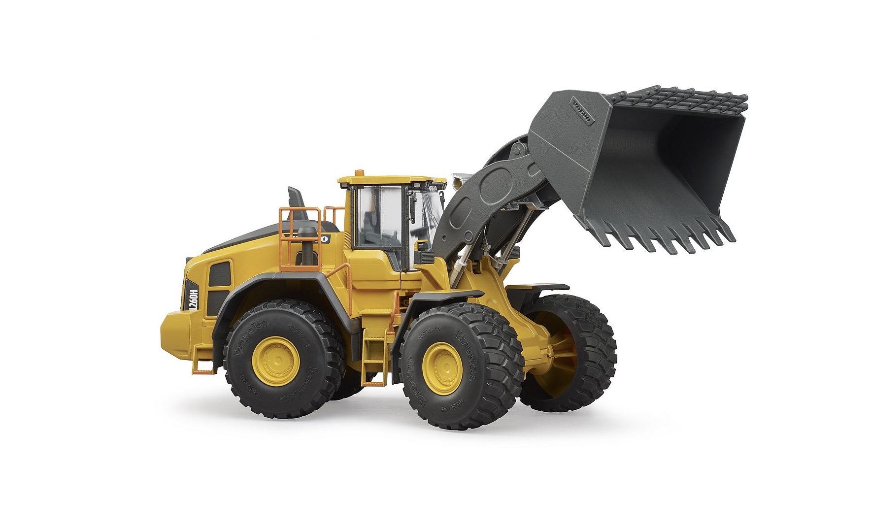 This impressive wheel loader is the latest highlight in the theme world of construction vehicles at BRUDER. The model of the Volvo L260H is equipped with a fully functional loading arm and an impressive, tiltable shovel. The detailed cabin serves as a workstation for the well-known BRUDER bworld figures. The engine hood in the rear can be opened for various service work.